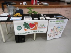 I was almost sure that the students would think of fresh fruits and veggies as “icky,” and not find much value in our presentation. I was happily surprised to find that the students were rushing the table, begging for stickers and wanting to learn about how the plants on the table had developed into actual lettuce and strawberries.